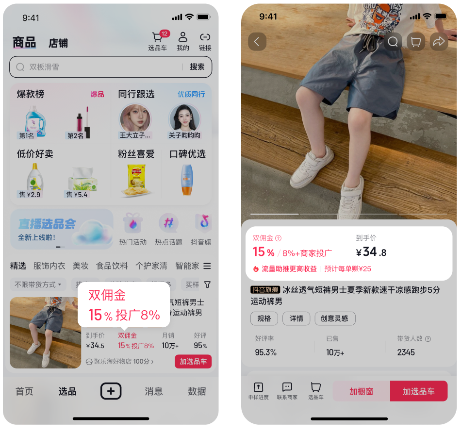 达人侧无需反复询问,在选品广场可以直接筛选,一眼就能找到适配的合作商家;商家也能精准吸引有意向的达人,实现高效合作。