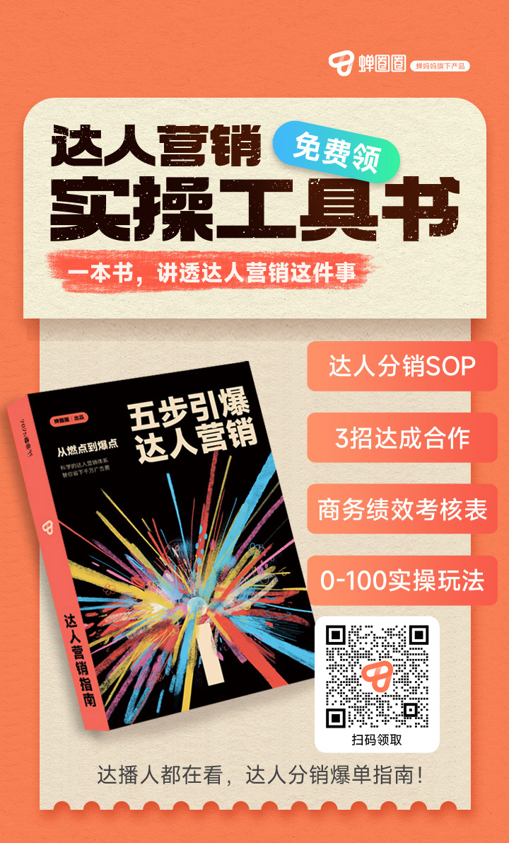 更多达人运营的干货知识尽在达人营销指南《五步引爆达人营销》,扫码领取电子版!