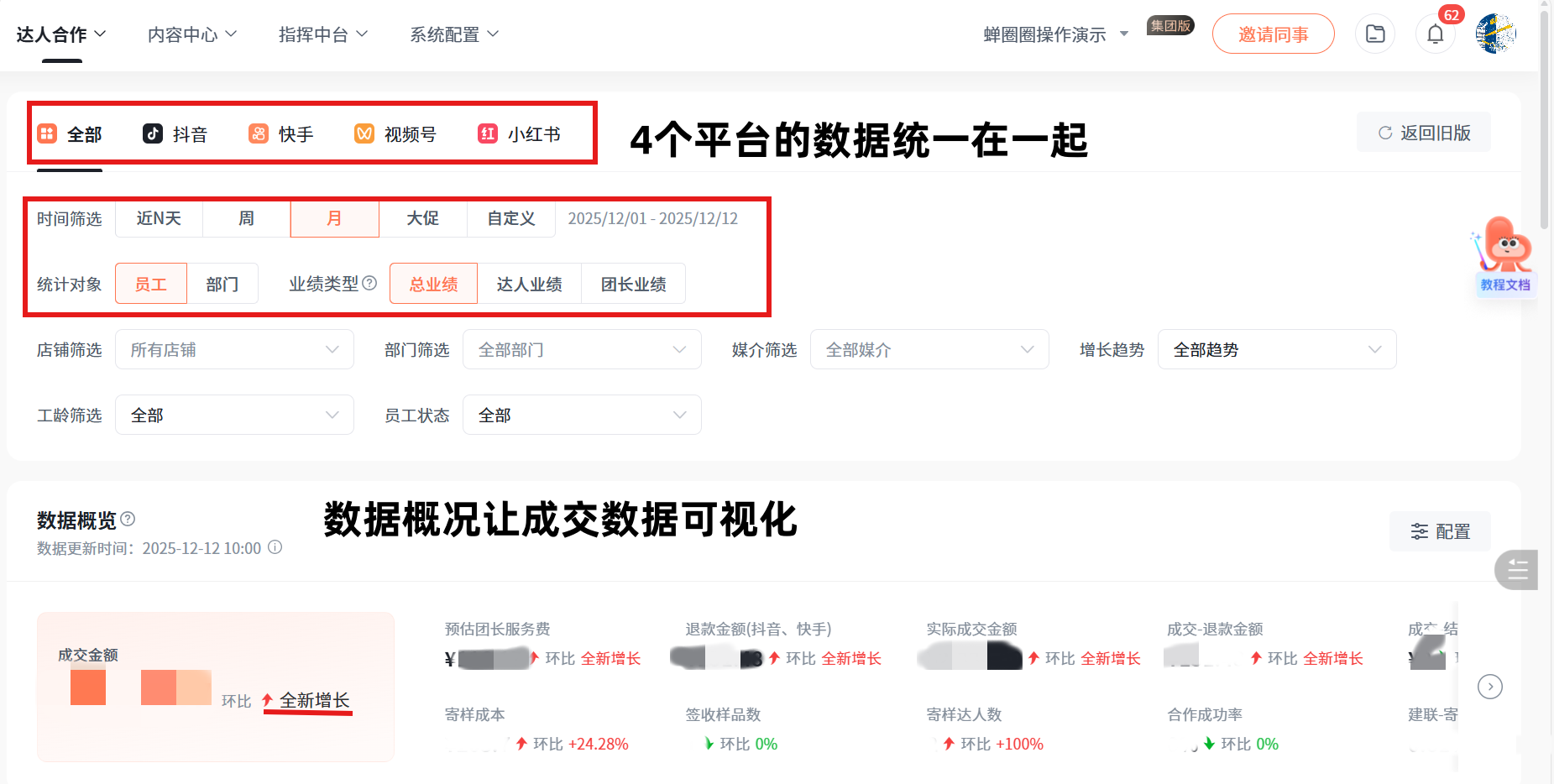 屏幕上同时打开着 7 个页面:抖音达人后台、快手数据报表、小红书合作台账、电商平台结算单、财务回款明细、团队提成表,还有一个写满了密密麻麻公式的 Excel。 他的眼睛开始发花——同一个达人的 GMV,在三个系统里竟然差了 3 万块,到底哪个才是对的?