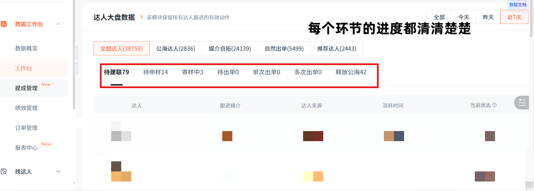 - 自动留存所有操作痕迹与凭证,工作进度、达人状态、项目节奏 实时可视。