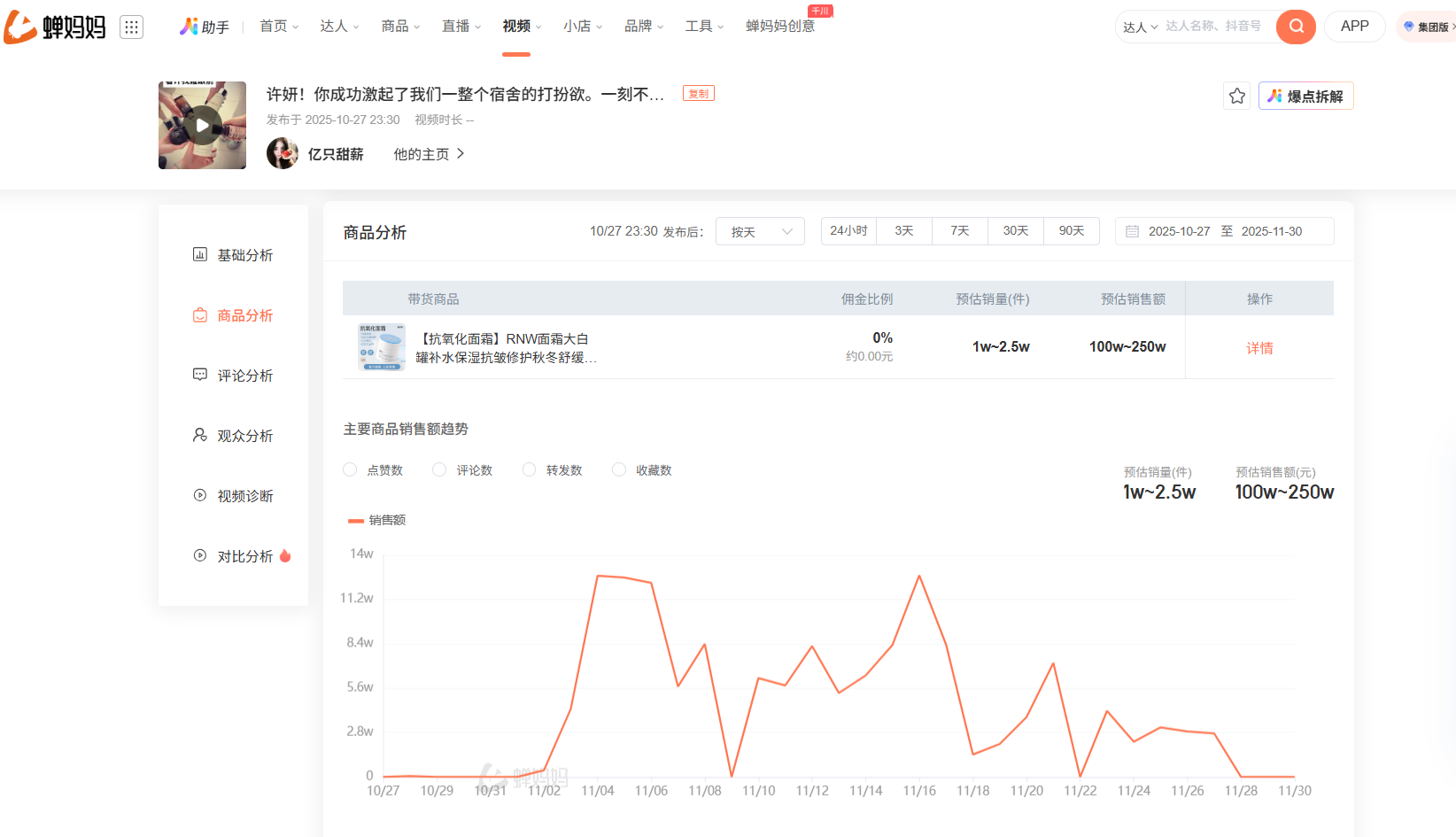 通过全域推广的付费杠杆,这条图文最终拿下超100万GMV(近90天单品累计GMV500万)。