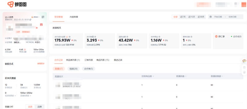 这里可以使用蝉圈圈的合作单功能,可以自动追踪达人合作的数据,实时更新,提高效率,还可以根据已设定好的合作机制,自动计算合作佣金,解放双手。