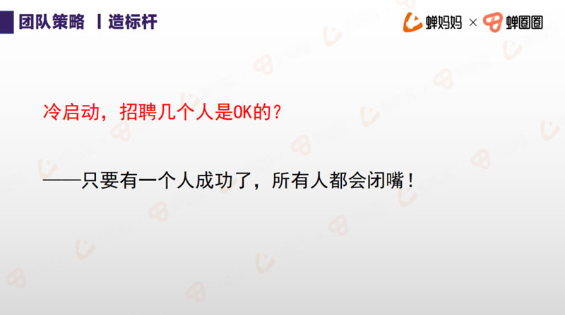 另一个是冷启动如何快速激活团队,对于冷启动而言,0-1是一个坎,如果团队成员被达人连续拒绝,很容易对产品产生怀疑,从而不能更好的去沟通,形成恶性循环。破解这一难题的方法是先成就一个成功标杆,如果一个人可以,大家就不会怀疑产品、团队。