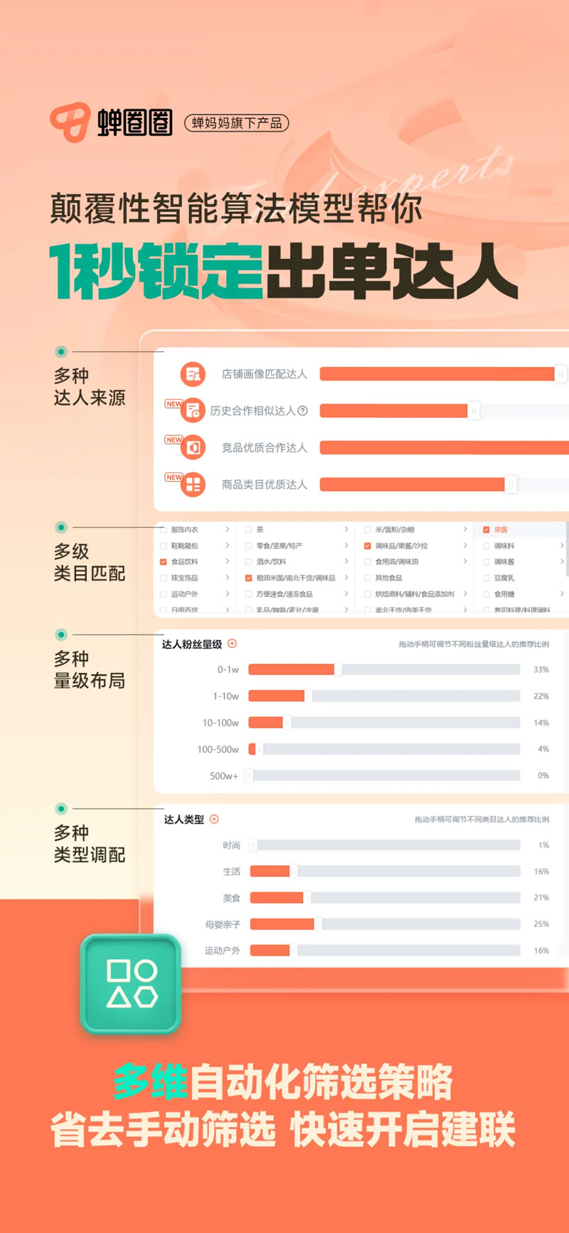 而这个AI就是蝉圈圈的智能找达人功能,可以根据团队设置的画像,每天自动为品牌推荐最多150个精准达人,包括达人名单、达人精准评分、达人基础信息等,全方位帮助品牌又快又准找到达人。