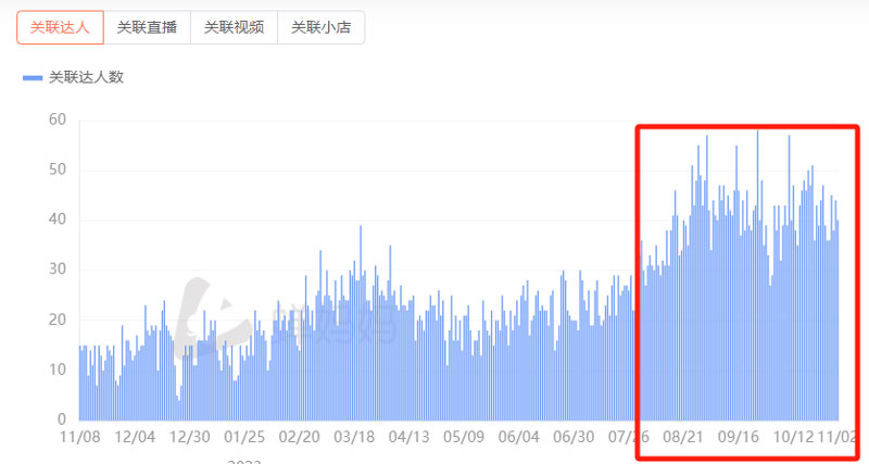 日活7亿的抖音,是品牌不可缺的布局平台之一。在抖音平台,宝宝馋了的月GMV从今年2月份的100万~250万,到现如今的250万~500万,翻倍的GMV背后,离不开其对达人营销的布局,尤其是从今年8月开始,大批量合作达人,铺设种草内容,不断撬动抖音增量。