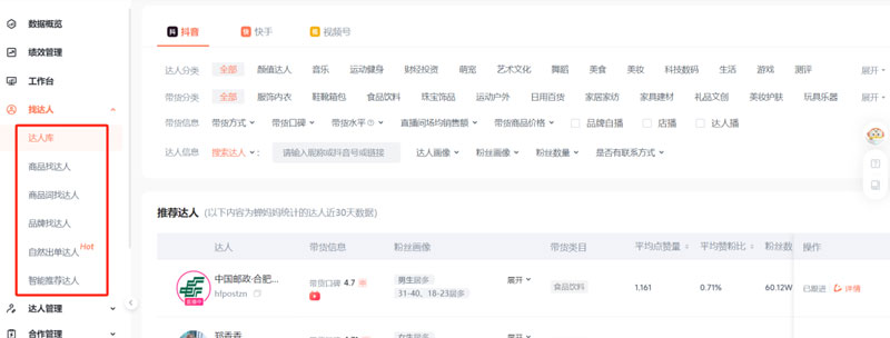 蝉圈圈的找达人功能启用智能算法模型,在收录5亿达人、7亿商品、50亿达人视频的基础上,利用大数据分析,智能匹配适合品牌的出单达人,达到更快、更准、持续增加达人资源的效果。