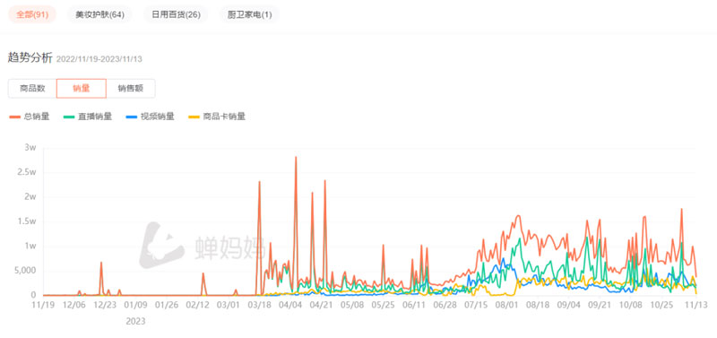 尤其是在今年7月开始,芊小白直接进入加速模式,伴随着达人合作量的增加,销量、销售额也呈现一个大爆发的趋势,其中销售额相上个月直接翻倍。