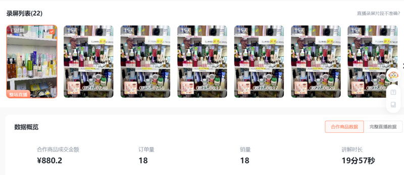 用了蝉圈圈之后,蝉圈圈自动录屏功能,达人一上播就开始录,会将主播讲解的片段自动生成切片用于投放,还会自动识别话术和收集用户评论,帮助品牌快速提炼优秀话术。