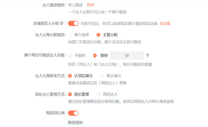接入蝉圈圈之后,解决了这个达人归属的问题,leader可以在前期就设置一个达人由几个商务跟进,如果被某个商务跟进了,其他商务则不能再跟进,清晰达人资源分配,既减少了团队冲突,又提升了建联效率。