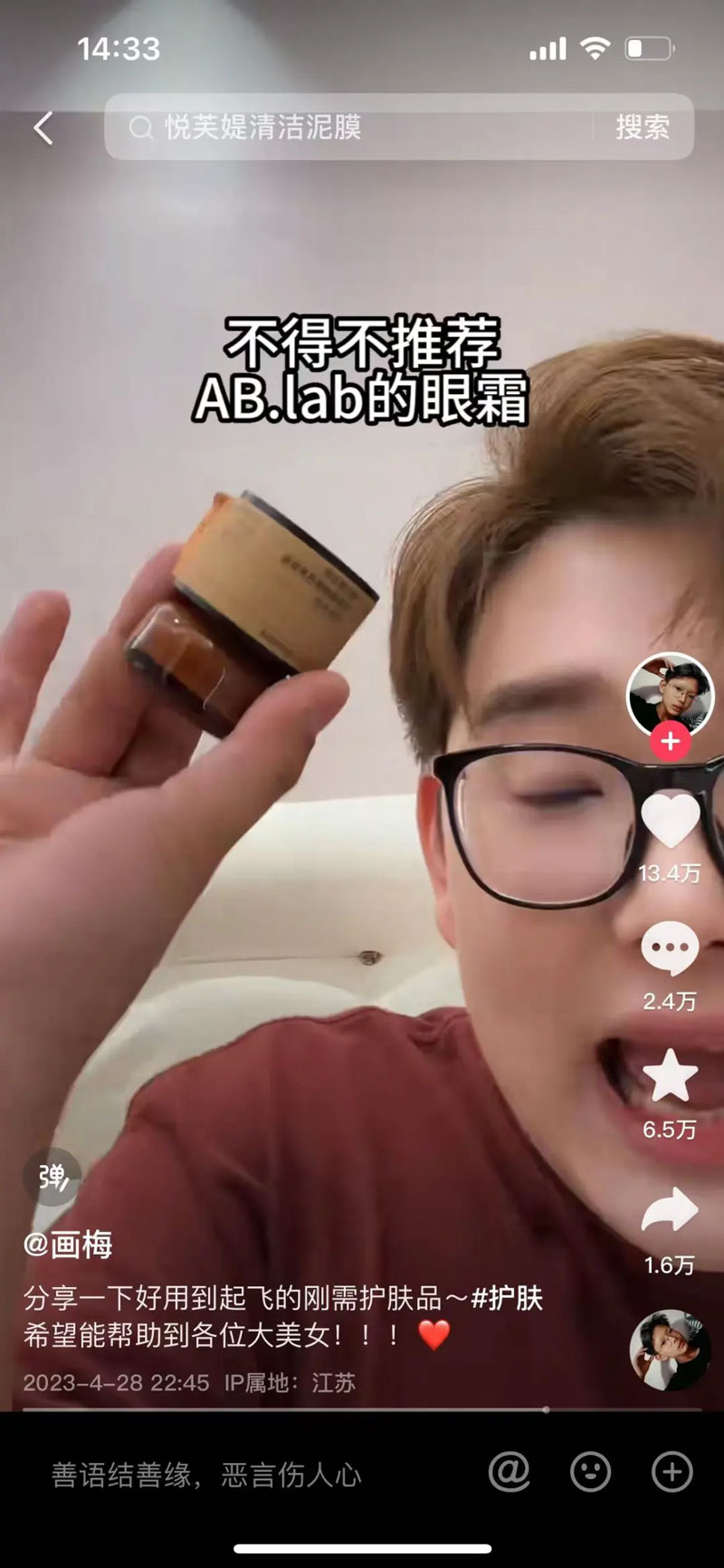针对眼霜,AB.LAB主打“熬夜后的痛点”,以画梅为例,本身是化妆师,在化妆品公司的产品研发部门上过班,积累了不少美妆护肤的经验,专业深得粉丝信赖。其擅长用不同场景种草美妆产品,与AB.LAB合作期间,先是做了一期“好用到飞起的刚需护肤品”,以“熬夜怕黑眼圈暗纹”为痛点种草用户,再通过直播安利,成功为品牌带来了500万-750万的销售额。