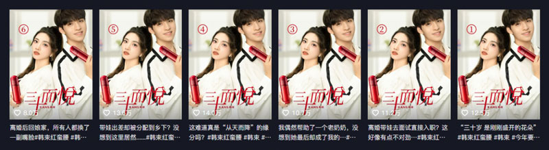同样的模式,韩束也运用在和其他剧情类博主的合作上,例如@莫邪、@魔女月野、@聂小舟等。