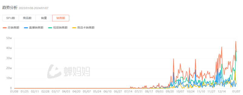 作为一个传统的鸡蛋品牌,好念头从2023年7月开始做达人营销,半年时间内销售额持续攀升,截止24年1月7日,其月GMV已达750万-1000万,好念头食品创始人陈辉表示“进入抖音后的销量增长至少10倍”。
