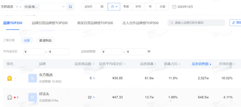 而好念头仅半年就已经跨越了两个阶段,往第三个阶段迈进,通过蝉魔方可以看到,上个月好念头在抖音生鲜蔬果-肉蛋禽类排行第二,月合作达人973。