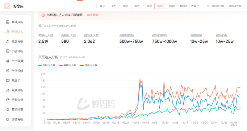 大范围建联达人是科学化放量阶段的关键,好念头借助蝉圈圈智能推荐达人功能,收录了抖音、快手、小红书等多平台的达人,自动根据好念头的需求,每日推荐150个精准达人,商务一上班就可开始建联,大幅提升效率,帮助好念头短时间建联大批量达人,加速放量。