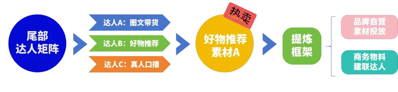 斗半匠采用“尾短频快”法,通过与大批量的尾部达人合作,高频次发布短视频内容,从中验证,提炼爆款内容的框架与素材样式,并将其作为后续分发/达人合作的模板,在市场中反复投放。