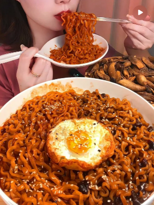 在某个夜深人静的时候,你刷着抖音,刷到博主吃着火鸡面,红彤彤视觉,吸溜吸溜又哈斯哈斯的进食声音,不禁让人流下心动的口水。
