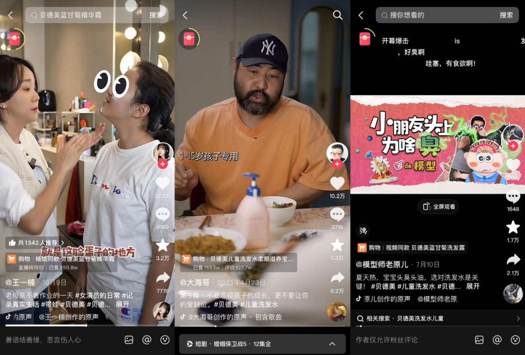 例如,儿童面霜主打舒缓保湿,贝德美就延续卖点,打造缓解敏感起皮、化妆不卡粉的场景,合作达人辣妈汤圆圆,单条视频就获得了100万-250万的销售额。