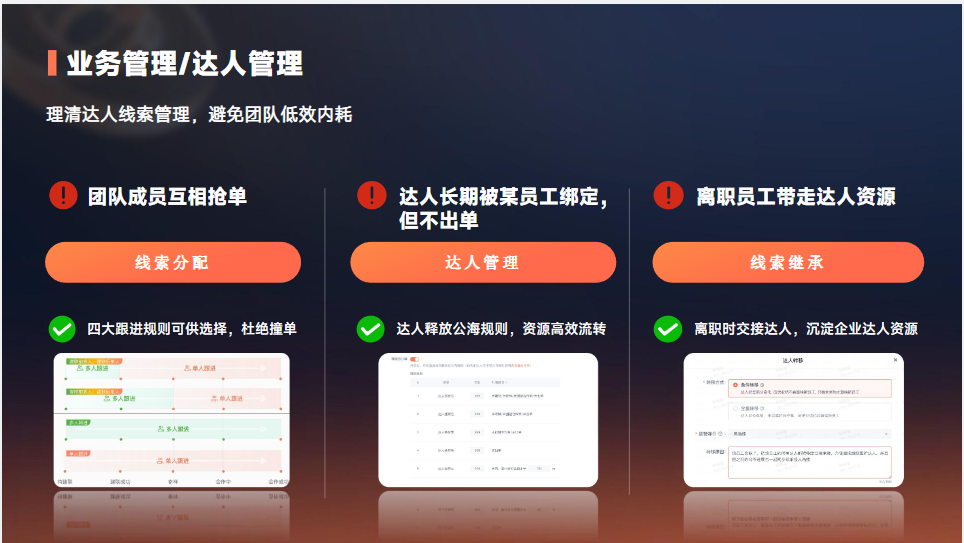 - 人力不堪重负: 达人数量激增,人工跟进成本直线上升,管理百人团队力不从心。