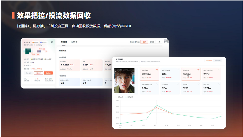 - 达人智能分层: 依据历史数据自动评估达人效能,优先倾斜资源至高ROI达人。
