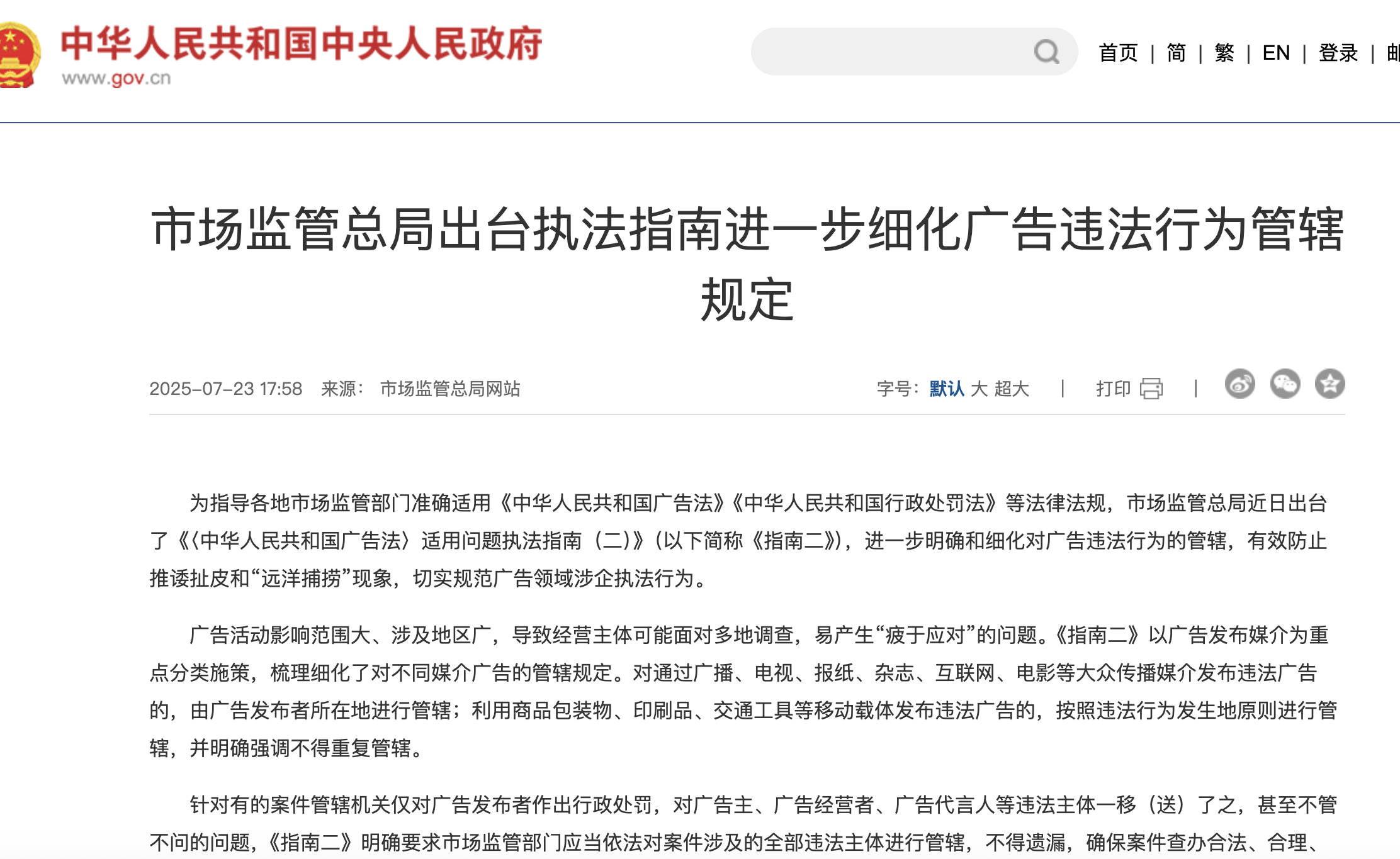 国家市场监管总局最新《广告法适用问题执法指南》明确,自10月1日起,企业投流费用月1日起,企业投流费用正式纳入广告费和业务宣传费范畴,其企业所得税税前扣除上限为年度营业收入的15%,超额部分需按规定纳税。这意味着,品牌方在投流预算的规划与使用上将面临更严格的限制与更高的隐性成本压力。