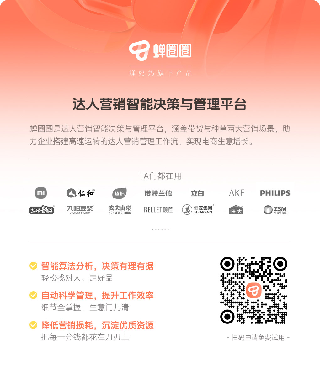 蝉圈圈,助力每一个品牌在达人合作中赢得速度,也赢得信任。