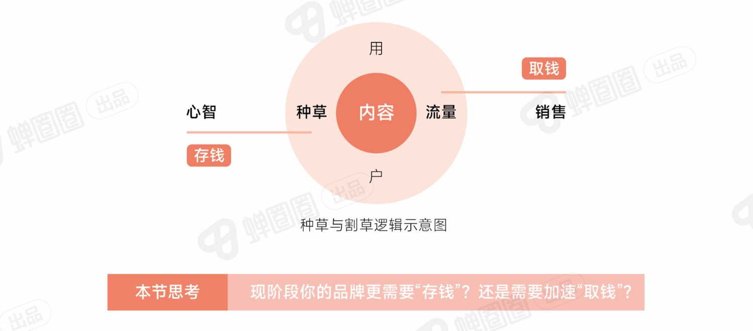 品牌通过达人产出的内容触达用户,在用户心里留下“这个东西很不错的印象”,这个就叫心智种草。做心智种草就像是存钱,是一种积累。而把产品卖出去,就像是在取钱,则是一种消耗。