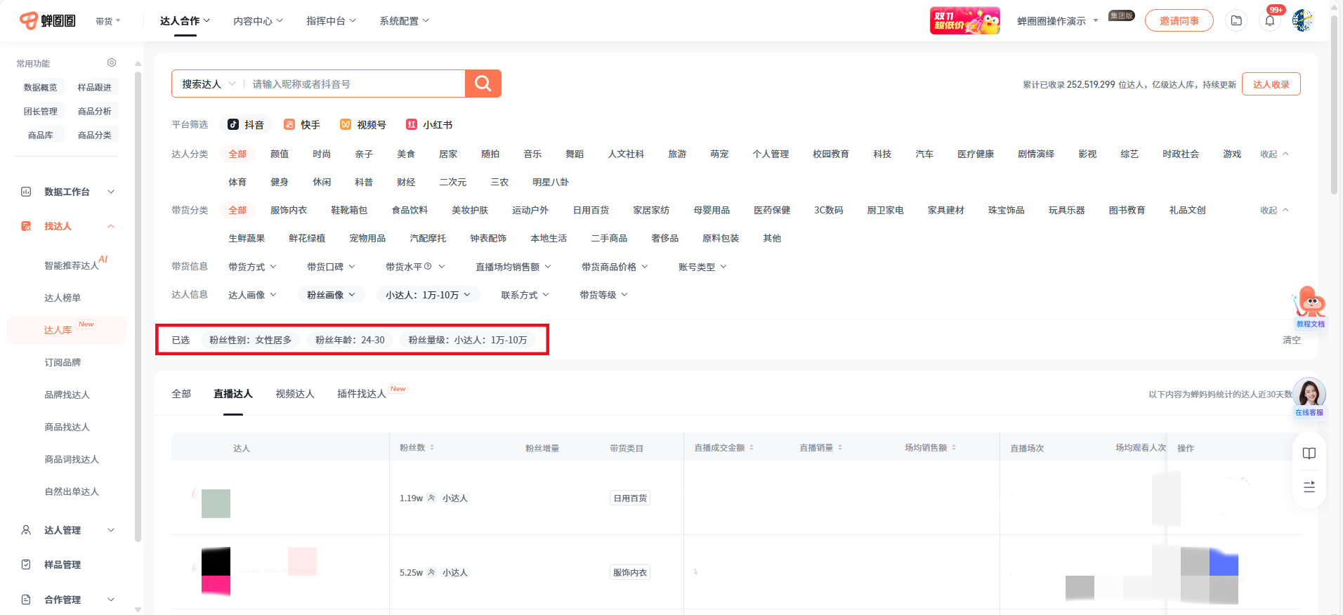蝉圈圈—— “活的”达人资源中心,核心做了三维度的结构化分类。